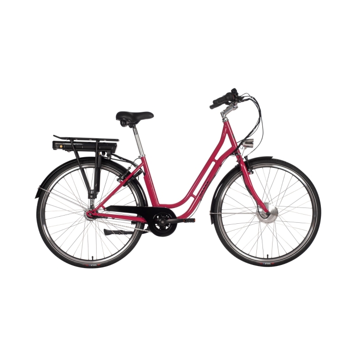 Fashion Plus Röd erbjuder en körupplevelse i toppklass. Med Shimano Nexus 7-växlad navväxel växlar du mjukt och exakt – perfekt för stadens alla tempoväxlingar. För din säkerhet är cykeln utrustad med både Promax V-bromsar fram och en klassisk fotbroms bak, vilket ger trygg och snabb inbromsning när det behövs. Den robusta stålgaffeln ger ett stabilt grepp mot vägen och CST-däck i storlek 28 x 1,75 garanterar komfort och slitstyrka i alla väder. Cykeln har en ramhöjd på 45 cm och väger 27 kg, inklusive batteriet som smidigt sitter monterat på pakethållaren.